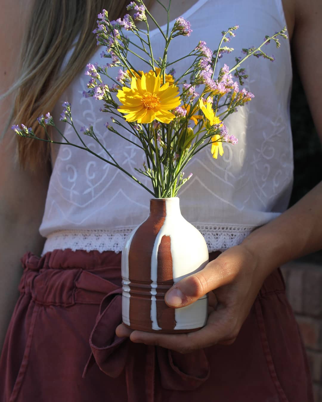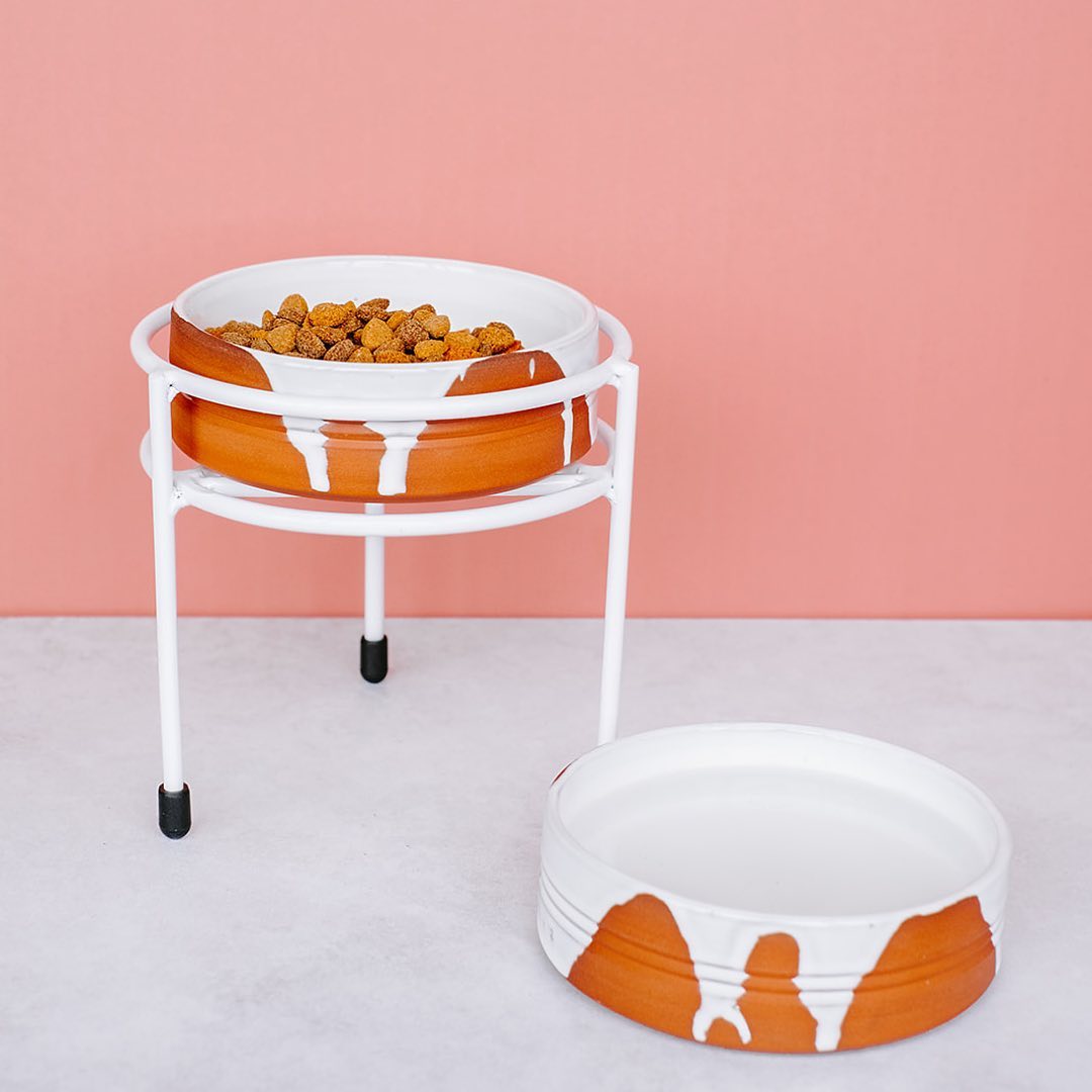 Terracotta and white glaze just work together; don’t you think? Each vessel is unique, from the tumblers right through to the plates, displaying a slightly different spill every time.